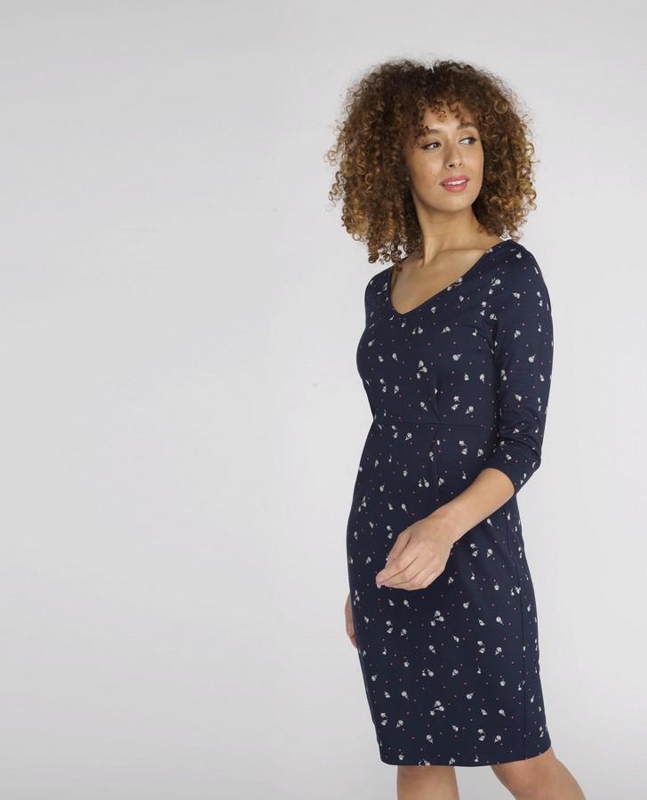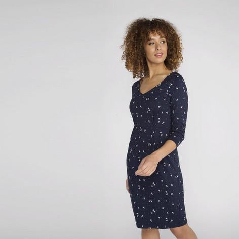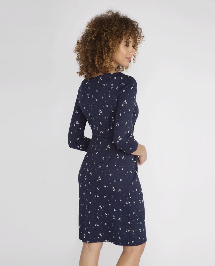 Every wardrobe needs a navy floral dress and this piece is a beautiful addition. The three quarter length sleeves and subtle red dots makes it ideal for the new season.