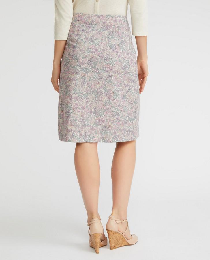 Our gorgeous Clematis Garden print has a summertime feel to it all year round. Made from linen, this skirt is a perfect choice for hotter weather that allows you to keep your chic even as the temperature rises. With pockets at the waist and a pretty a-line shape, this shirt is feminine and easy to wear.