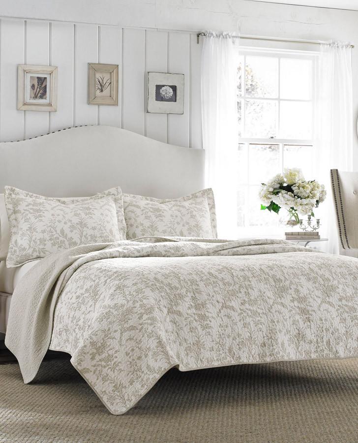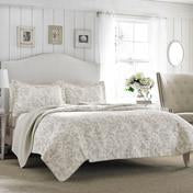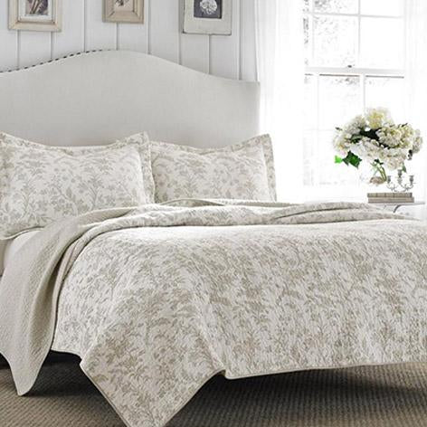 This is not your typical Laura Ashley floral. The Amberley Biscuit Quilt Set offers a clean two-tone floral design. A soft biscuit floral design is printed over a white ground. The quilt reverse has a floral vine print. Let the 100% cotton materials surround and comfort you the next time you crawl into bed.