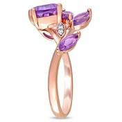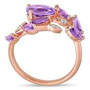 The 1 4/5 CT TGW sparkling elegance of this beautiful leaf bypass ring from the Laura Ashley Collection features pear and marquise-cut, color-enhanced amethyst gemstones with round white diamonds. This attractive ring is crafted in rose-plated silver and is enhanced with a high polish finish