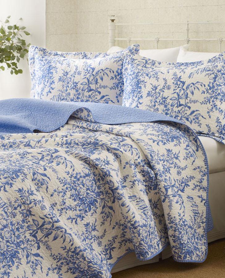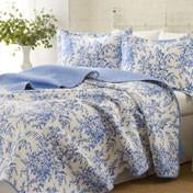 Traditional design has never looked as good as it does with the Laura Ashley Bedford Blue quilt set. Blue floral designs stretch and bloom across the ivory background color for a breathtakingly gorgeous print. The quilt reverse has a matching blue background color with small white floral accents. Add Bedford to you existing bedding or on its own to add comfort and style to your bedroom. Bedford Quilt Set includes one quilt and two shams (twin set includes one sham).