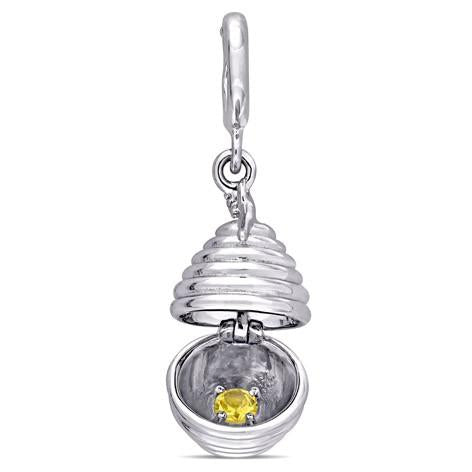This unique open beehive charm from the Garden Charm collection is crafted in sterling silver and features a honey-like yellow sapphire at its center with a white sapphire accent.  A fun and distinctive addition to your jewelry collection.