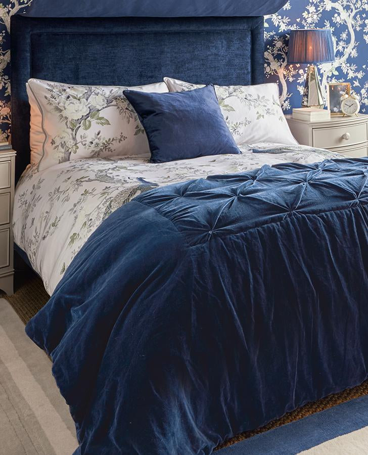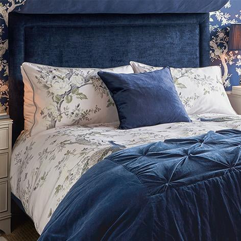 Classically ornate, our Belvedere print features elegant peacocks and timeless florals, and is the perfect addition to luxurious spaces. In the midnight blue colourway it is serene and stately, and as this duvet cover is made from 220 thread count cotton sateen, it also gives you a breathable and comfortable nights sleep. Pair with the matching Belvedere Midnight Printed Pillowcase for a coordinated set.