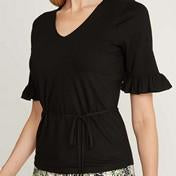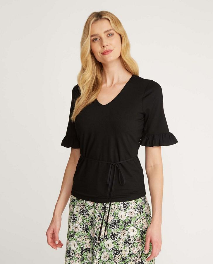 Add some frills for a romantic look with our Frill Trim Top. In elegant black chiffon, this top has a focus on feminine style, and pairs perfectly with your favourite skirts and trousers.