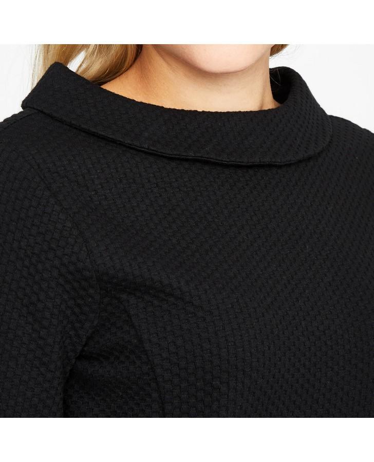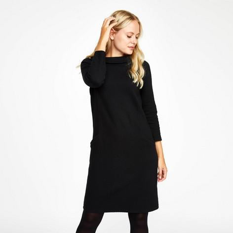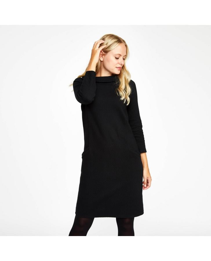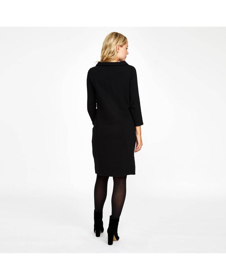Timeless and effortlessly stylish, this bardot neck dress is sure to become a favourite in your wardrobe. With three-quarter sleeves and a waffle textured finish, this flattering design is perfectly versatile to go from office to evening with ease.