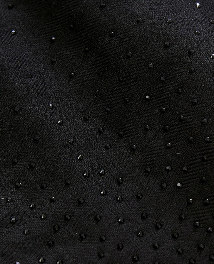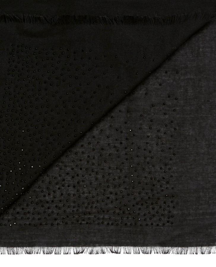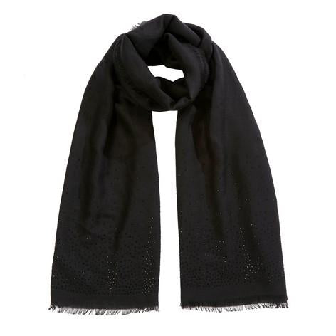A classic black scarf is reimagined with new glamour thanks to shining diamante detailing. The subtle effect of this catches light when you move, creating everyday allure.