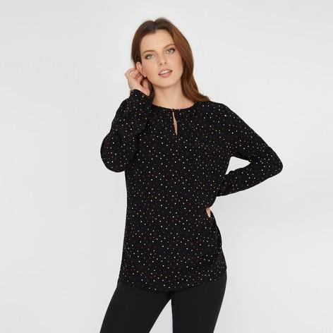 The classic blouse is given a contemporary makeover with our Stars and Diamonds print. Scattered like confetti, stars and diamonds in different colours give this piece a playful feel, and keyhole detailing at the neck keeps it feminine and pretty.