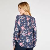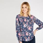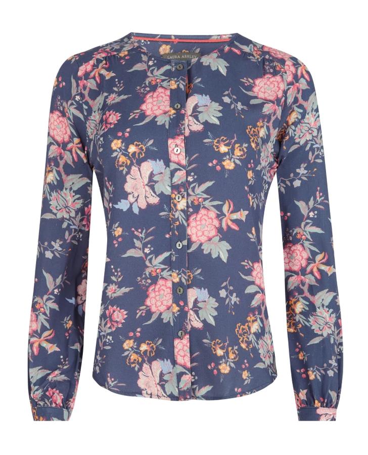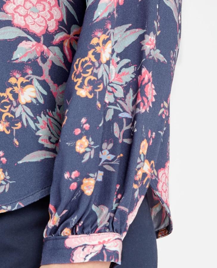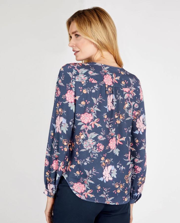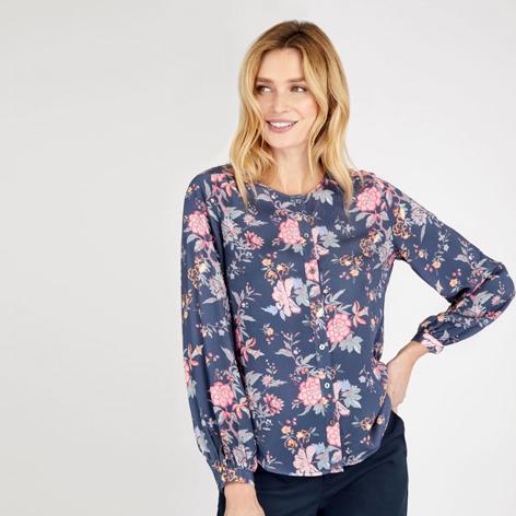 With its voluminous sleeves, curved hem, and button front, this blouse is beautifully distinctive. Stand out in contemporary florals in bright pink and blue, and create casual looks that are effortlessly stylish.