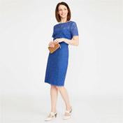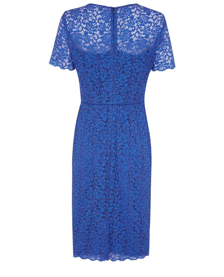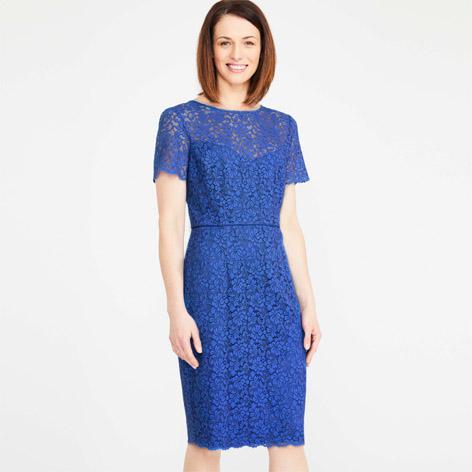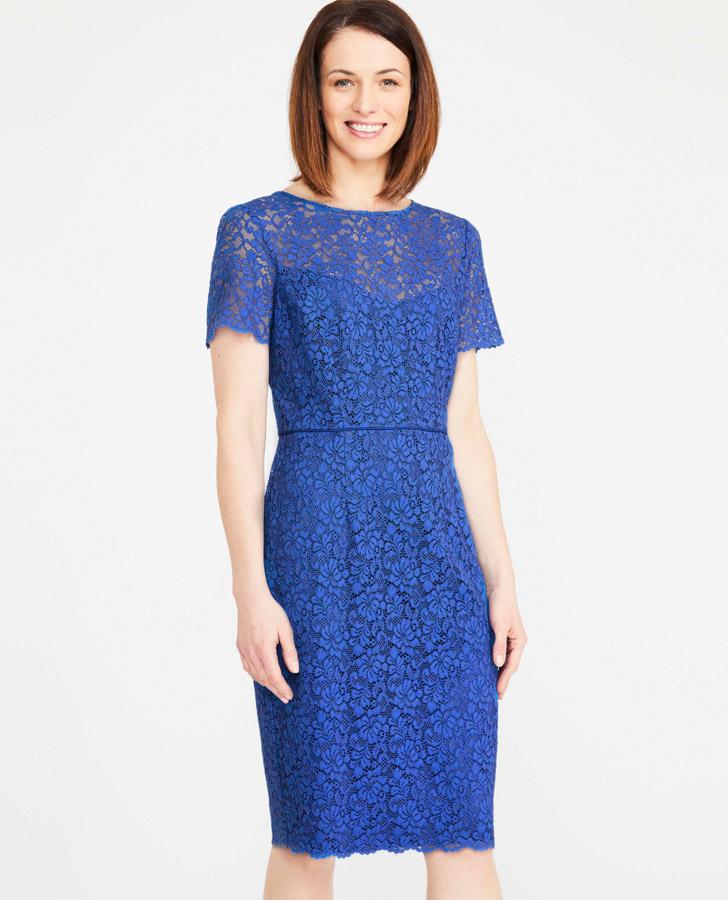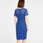 Vibrant and eye catching, our Blue Lace Dress is a statement that you need to make The wide neck and short sleeves are perfect for warmer weather, and showcases sparkling accessories beautifully. Embrace effortless style with this dress, and zip up and go knowing that you are on trend and ready for any event.