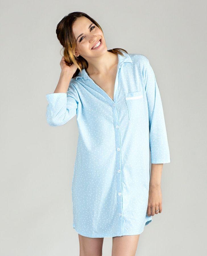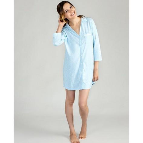 Women's Blue Scattered Dot Print 3/4 Sleeve Boyfriend Sleepshirt.