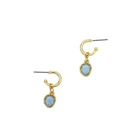 Sophisticated and classic, these small goldtone hoop earrings highlighted by a blue stone drop, are a must-have for any outfit.