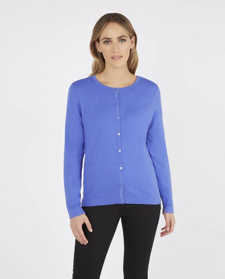 In a stunning bluebell hue, this deliciously soft cotton cardigan is the perfect piece that will keep you cozy without compromising on style. Layer up this season with this must-have wardrobe hero.