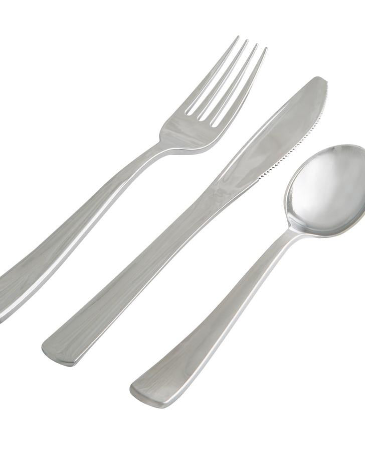 The perfect gathering just got easier with our high quality disposable partyware sets. Add a hint of elegance to your dining, whether you're at home, at the seaside or headed to a party. The set includes 56 pieces of high quality disposable plates, cutlery, glasses and napkins. All plastic is BPA free and recyclable. The plates and glasses feature a silver-foil trim around the edge for the stunning detail, and they're ideally sized for holding your favourite foods. The raised edges on each plate help to make sure that nothing slips off, and the disposable construction means you don't have to worry about the cleanup.