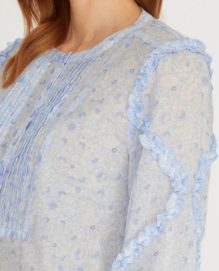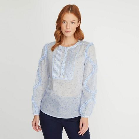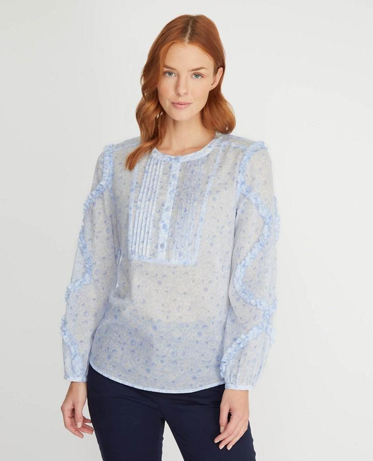 Invite a little ruffle into your wardrobe for playful looks with a feminine feel. Combining the ruffle with a classically beautiful floral print, the Cambridge Blouse is everything you need for looks with a touch of prettiness.