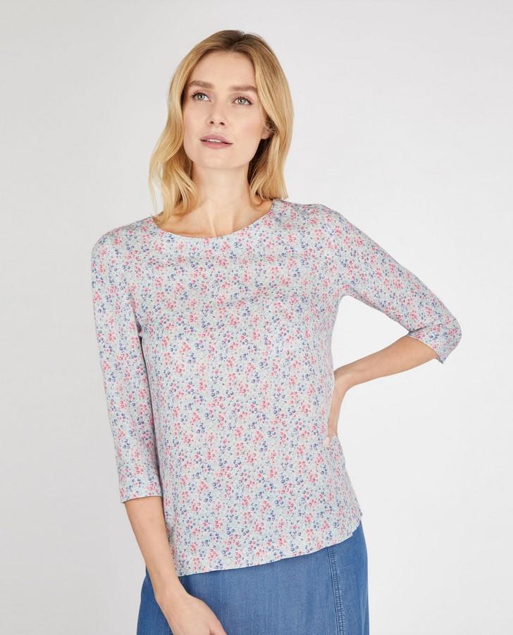 With three quarter sleeves and wide neck, this Pop Over Top helps you to take on summer in style. Featuring a front pocket and a gorgeous ditsy floral print, this piece is easy to style and comfortable to wear.