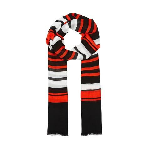 The timeless stripe is bold in our Clementine Stripe Scarf, featuring stripes of black and clementine in a striking design that you can rely on in any season. Layer looks and bring new colour to your wardrobe with this gorgeous, lightweight piece.