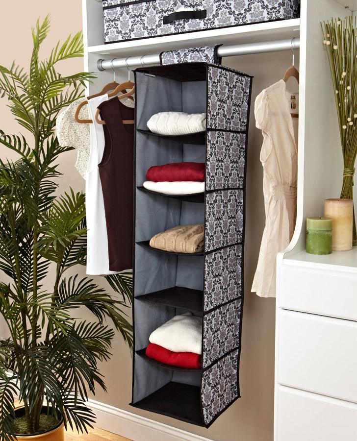 Add creative storage to your closet with the Delancy 6 Shelf Organizer. Featuring a delancy print with black trim, this organizer boasts six shelves for storing sweaters, scarves and other items that tend to stray from the ordinary hanger.