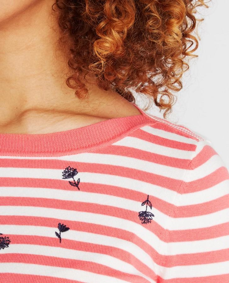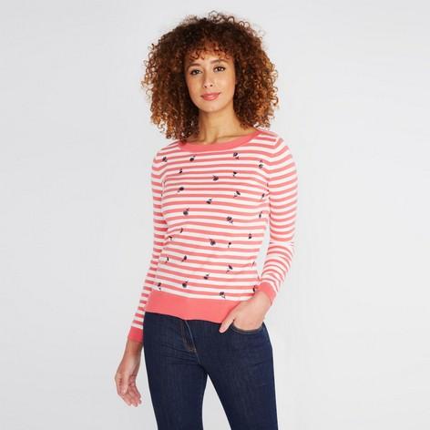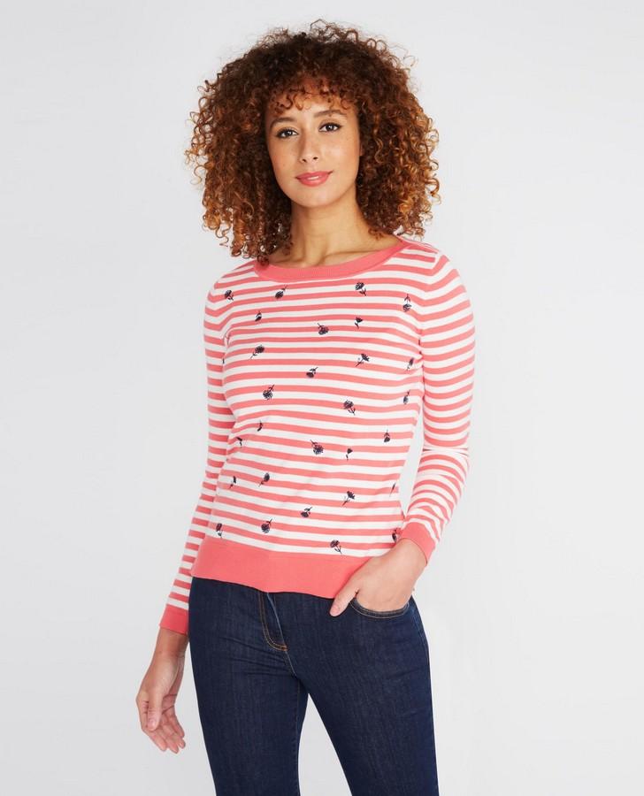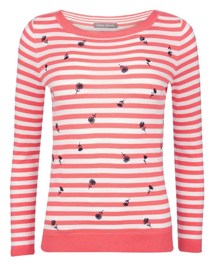 Crafted from cotton, this beautiful long sleeve, striped sweater is brilliant for an effortless everyday look. With tiny flower detailing and soft coral stripes, it will add a stylish and relaxed feel to any outfit.