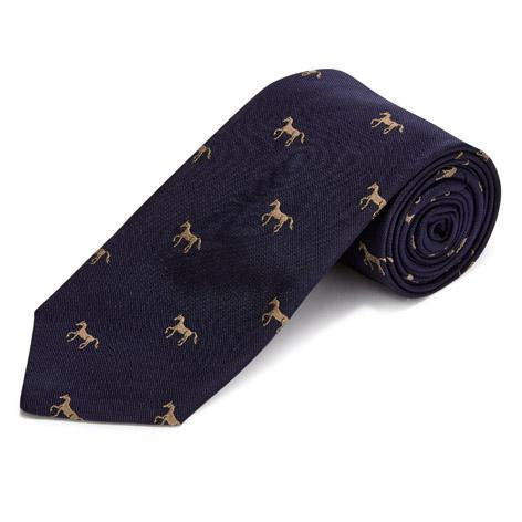 Men’s equestrian inspired tie, crafted from pure silk for luxurious quality. Features an embroidered pattern of horses.