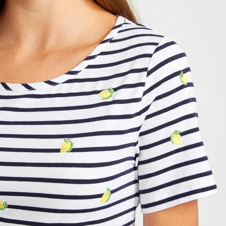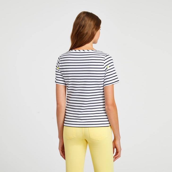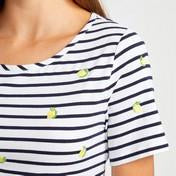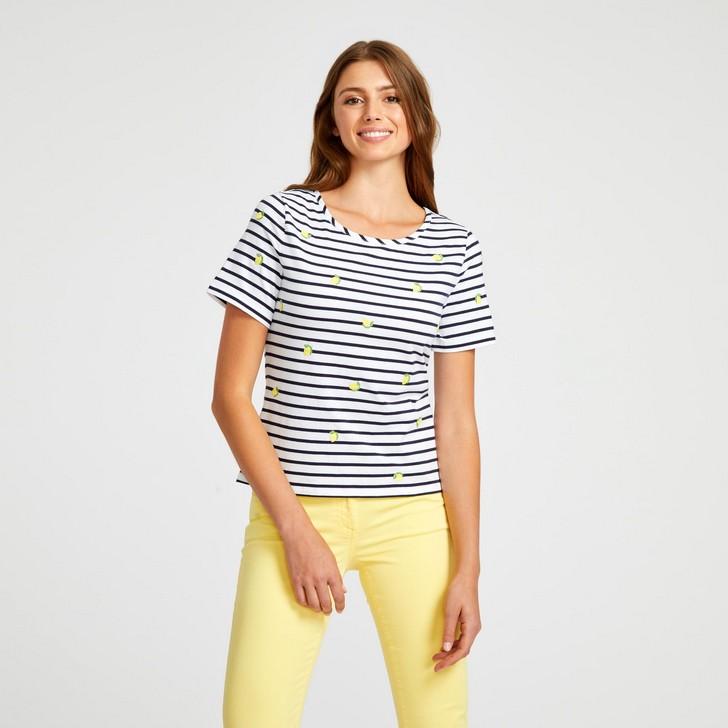 Stripes are always in vogue, and now they come with a citrus boost. With delicately embroidered lemons across the front and sleeves, this staple tee is given a unique look. Made from cotton with a touch of elastane, this top is comfortable with a perfect fit.