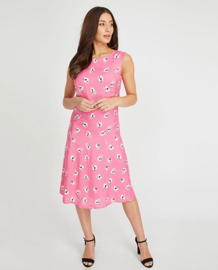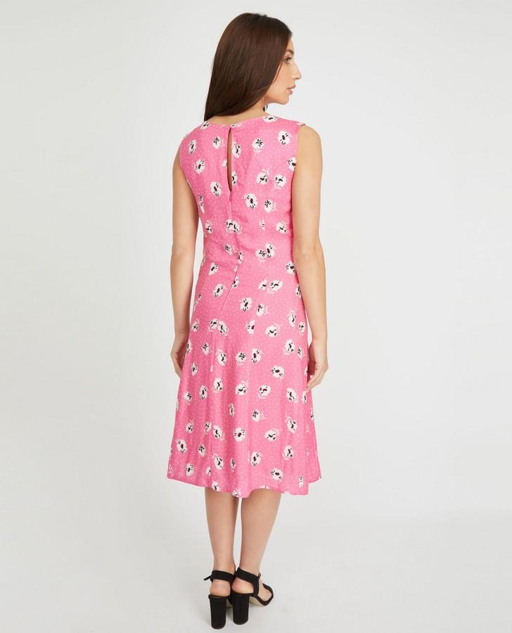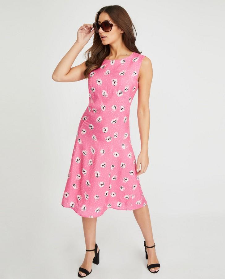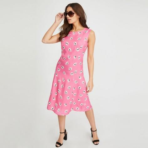 With its gorgeous silk feel, our dress has the classically beautiful fit and flare shape for a feminine silhouette. Featuring the Falling Daisy print in hot pink and ivory, this vibrant piece is perfect for summertime.