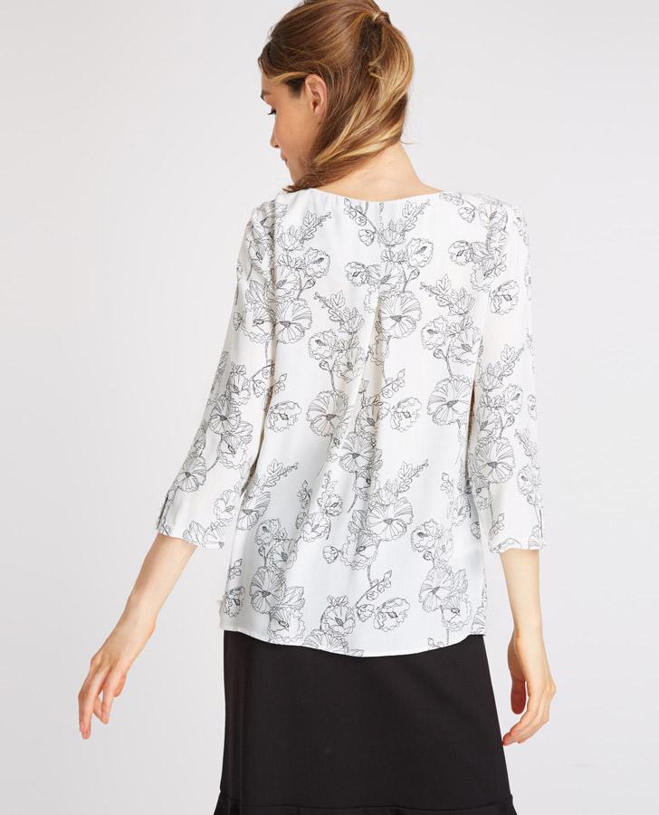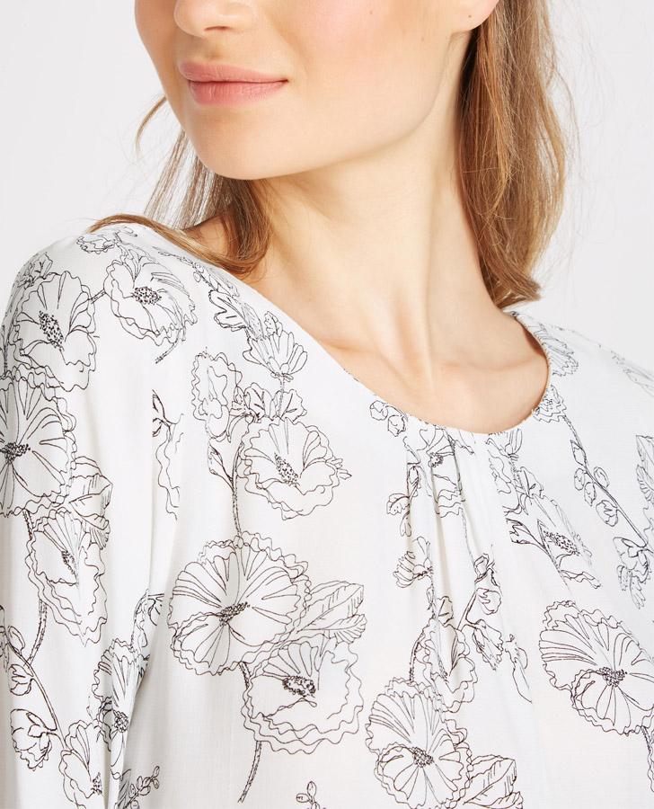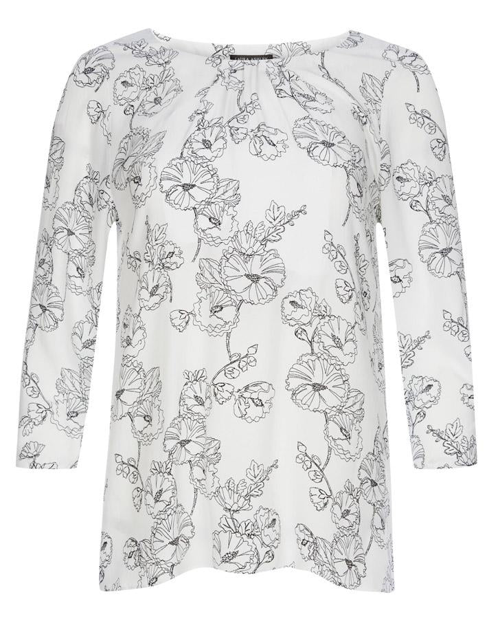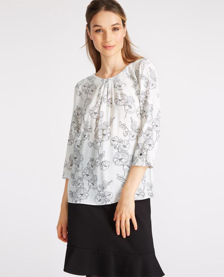 Simple and romantic, our hollyhock floral blouse is a versatile choice whether you dress up with tailored trousers or dress down with jeans. Gathered detailing and three-quarter sleeves complete this stylish look.
