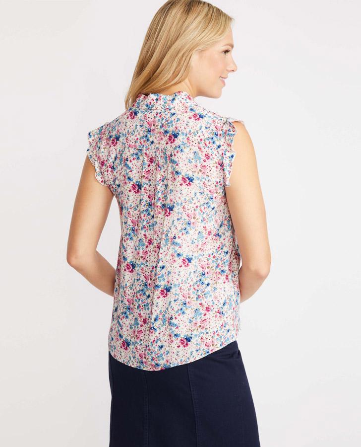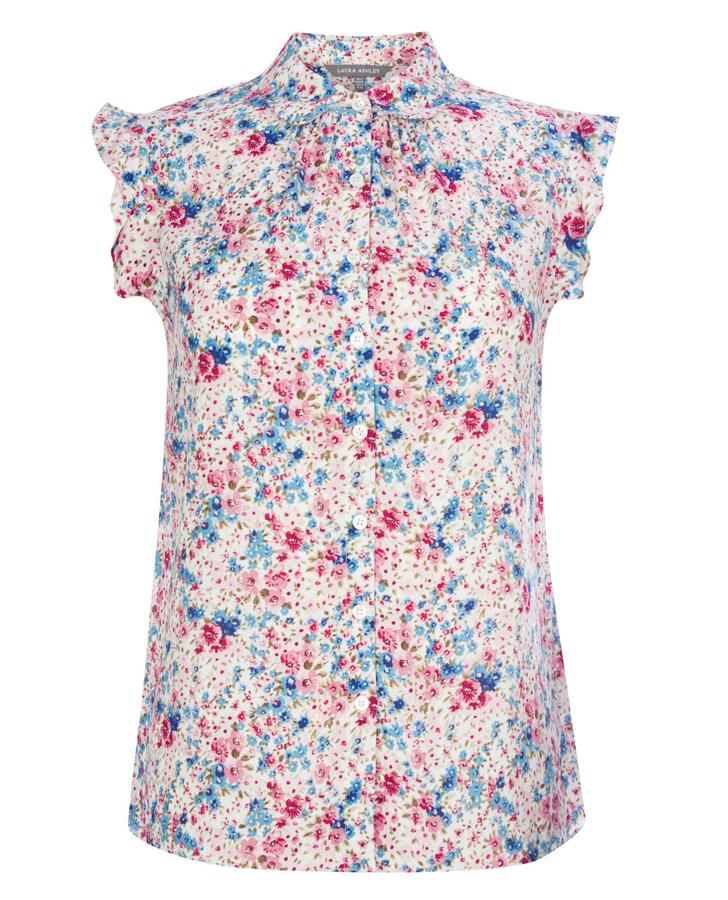 The pretty ditsy print of our Floral Peter Pan Collar Ruffle Blouse is a burst of colour in any wardrobe. The delightful peter pan collar is a playful favourite that brings new life to work looks and feminine charm to casual outfits. Ruffled sleeves complete the piece for throw-on comfort that celebrates colour.