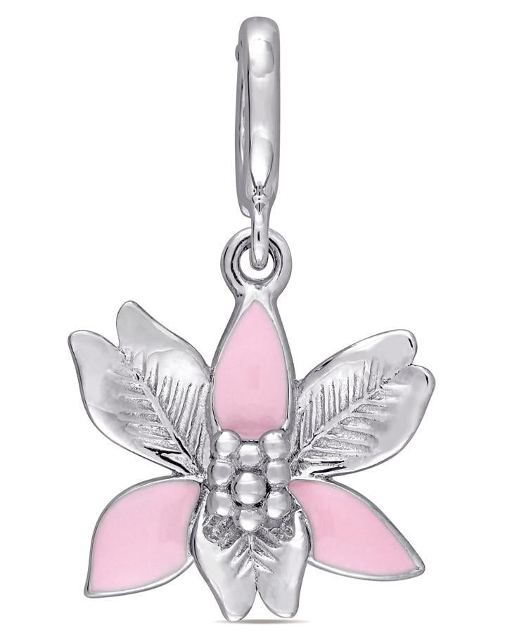 This stunning flower charm from the Botanical Garden Charm collection is crafted in sterling silver with a pink enamel accent. This floral piece is the perfect way to add a sophisticated feminine touch to your charm collection.