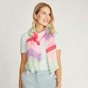 Pretty stripes in candy-sweet shades are a perfectly playful look for the summertime. Finished with a tassel at each corner, this piece is fresh colour for any of your looks this summer.
