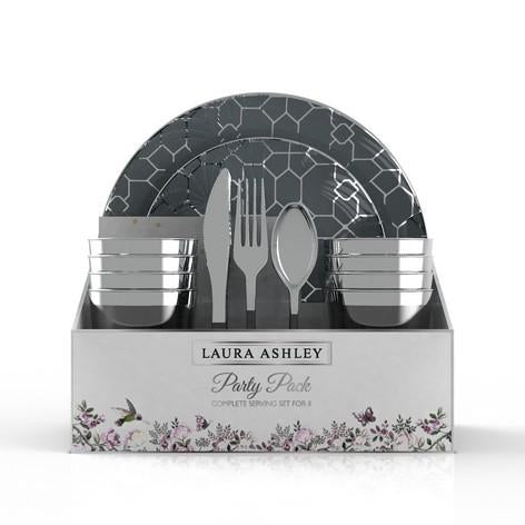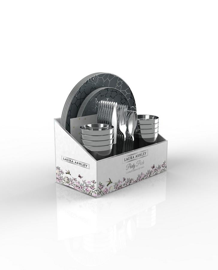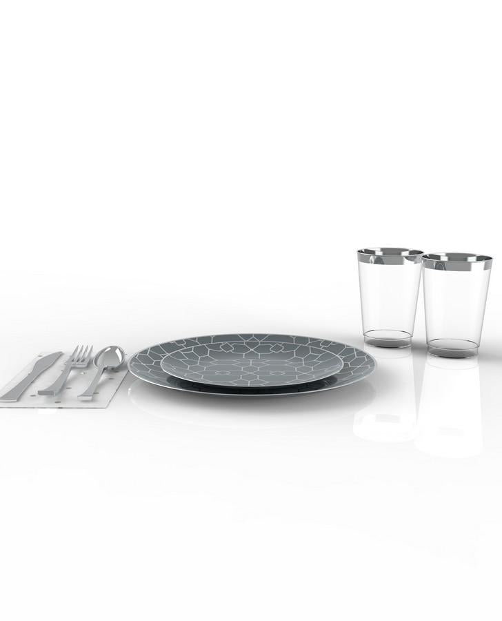 The perfect gathering just got easier with our high quality disposable partyware sets. Add a hint of elegance to your dining, whether you're at home, at the seaside or headed to a party. The set includes 56 pieces of high quality disposable plates, cutlery, glasses and napkins. All plastic is BPA free and recyclable. The plates and glasses feature a silver-foil trim around the edge for the stunning detail, and they're ideally sized for holding your favourite foods. The raised edges on each plate help to make sure that nothing slips off, and the disposable construction means you don't have to worry about the cleanup.