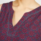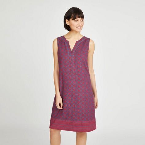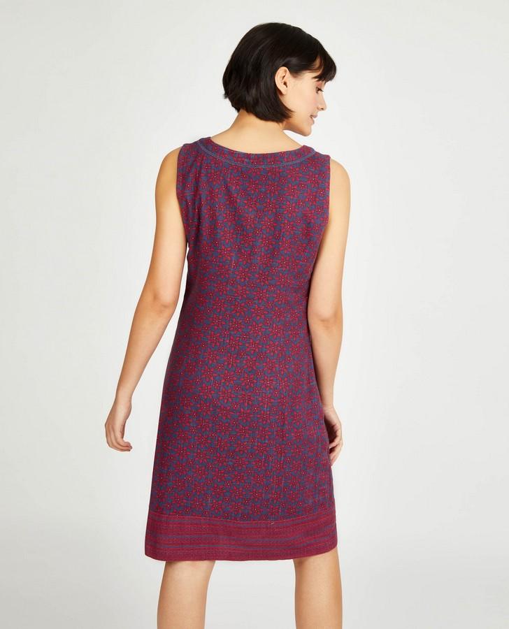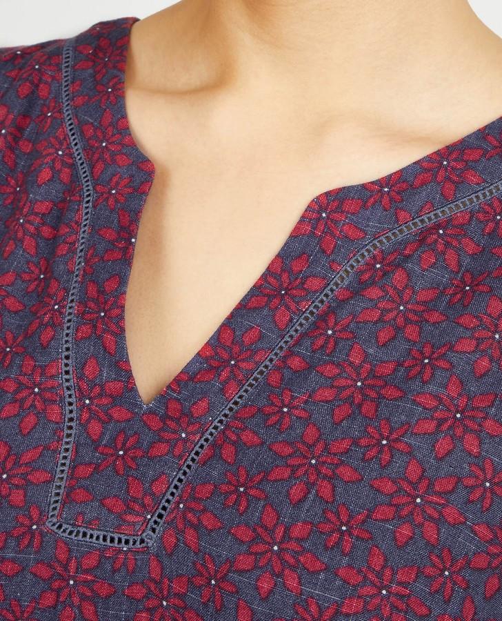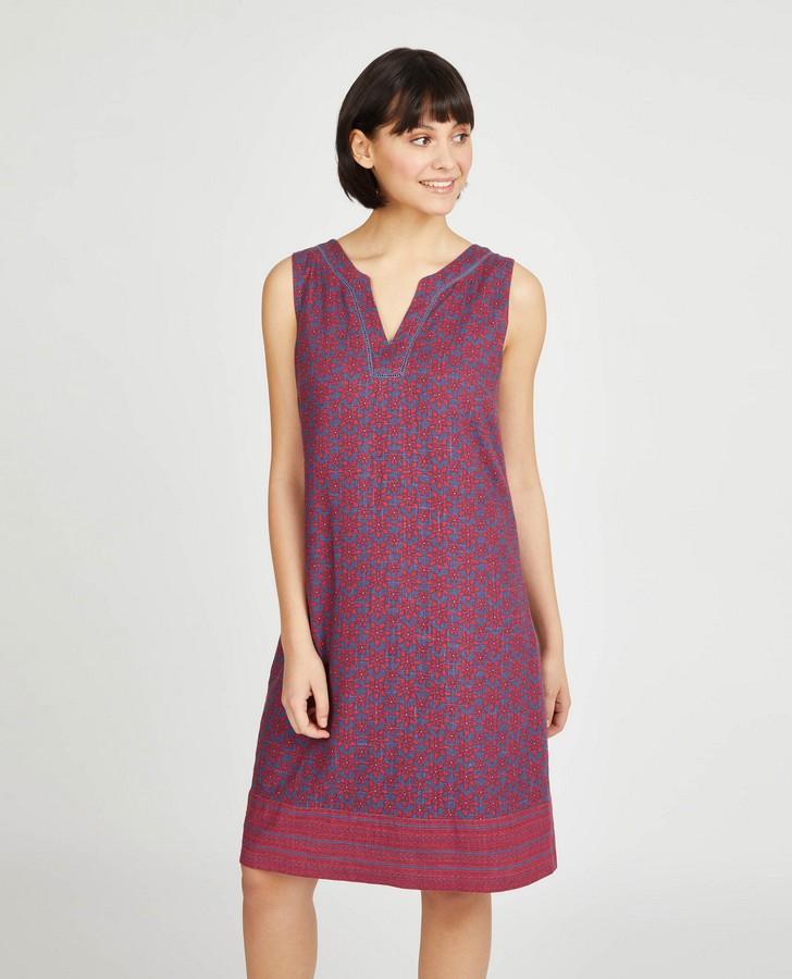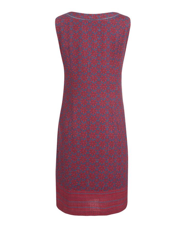 Hand painted tile has been transformed into a gorgeous print across this classic summer dress. The classic shift dress made from a linen blend helps to keep you cool when the heat rises, and the busy patterns are perfect for that tropical feel.