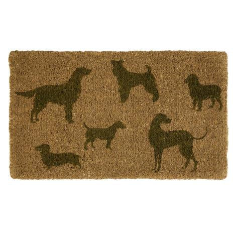 Dog lovers will love this eye-catching doormat, printed with canine silhouettes depicting various breeds.
