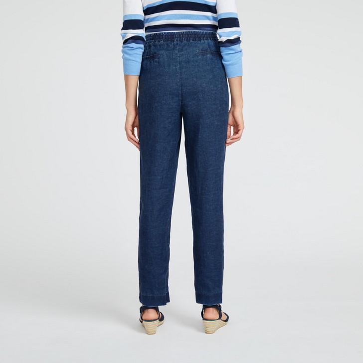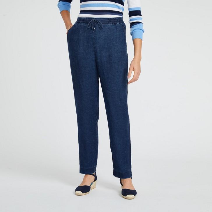 Indigo Linen Slim Leg Pull-on Pant