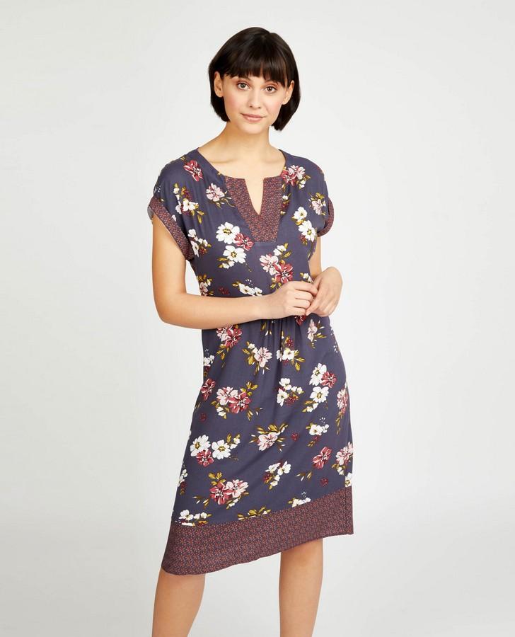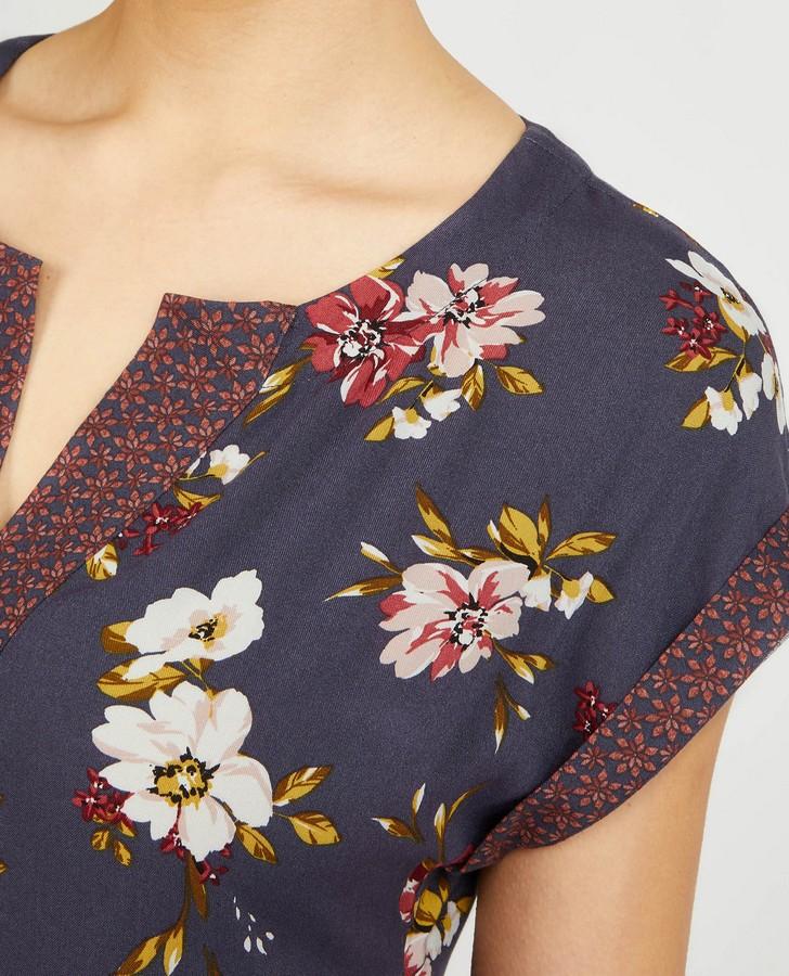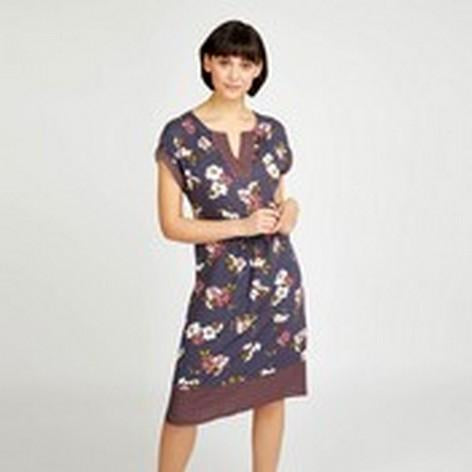 In rich ink, our Tunic Dress is a dramatic piece for casual looks. Details include turned up cap sleeves and a contrast collar, hem, and cuffs. Made from lightweight viscose crepe and finished in two gorgeous floral prints, this piece is stand-out style that is easy to wear and to co-ordinate.