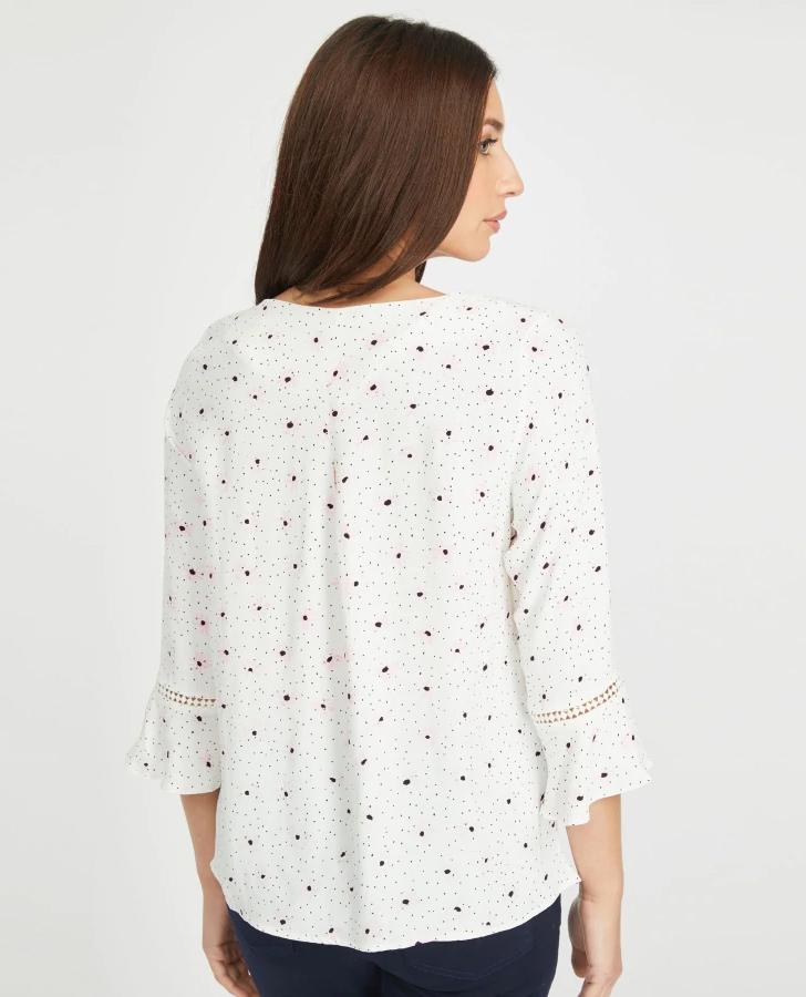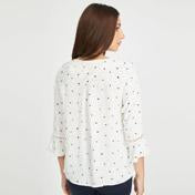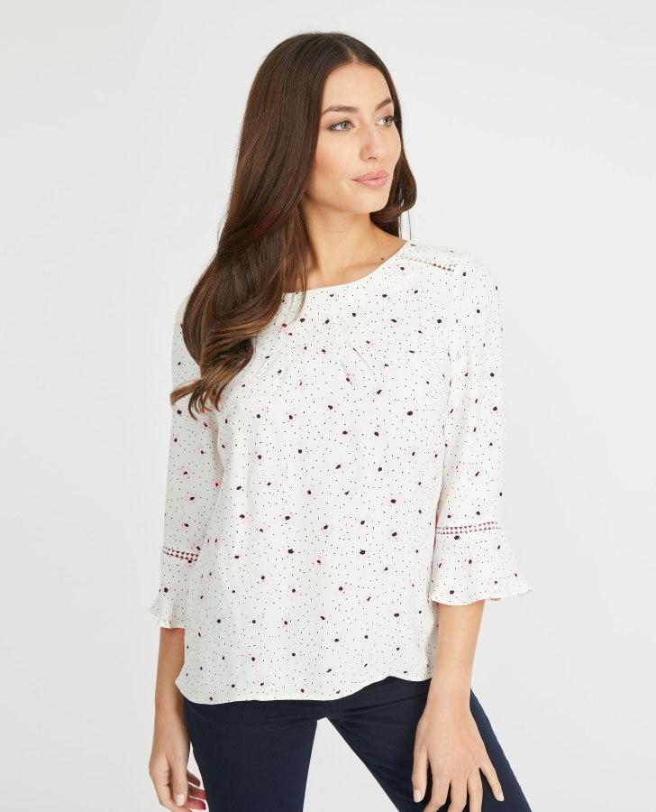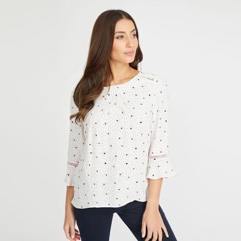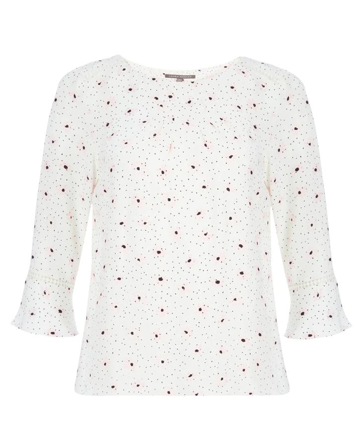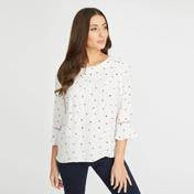 In ivory and camellia pink our Daisy Garden print is a pretty, seasonal look that you can dress up or down. With three quarter length sleeves this blouse is ideal for summer weather, and its vibrant print helps to keep that summer feeling all year long.