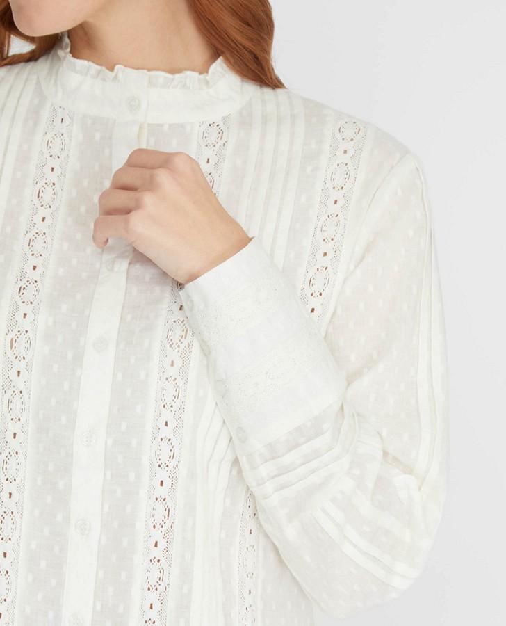 We have a focus on the feminine in this cotton long sleeve Dobby and Lace Pintuck Blouse. Combining a beautiful dobby texture with delicate pintucks, this blouse has classic beauty in the bag. Oh, and of course we had to add a touch of lace for a little extra elegance.