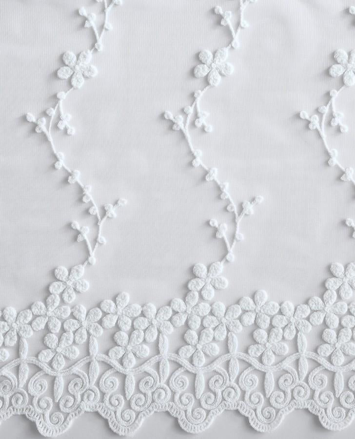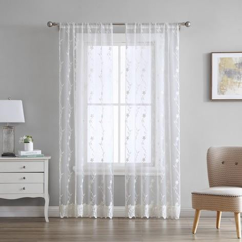 The Laura Ashley Melody Vine 2-PK Window Curtain Panels feature an elegant floral vine pattern with an embellished scalloped bottom.  A beautiful accent piece to any home decor.  Set includes two 38"W x 84"L window panels.