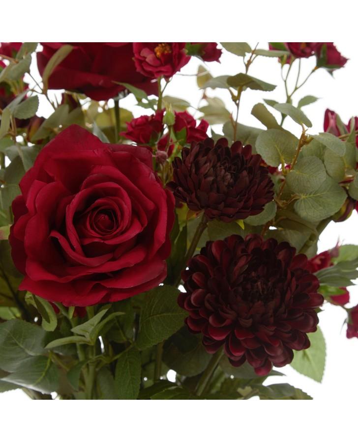 The dramatic shapes and deep red of our Winter Roses and Chrysanthemum Arrangement make it a statement finish for any room. Delicately arranged by our professionals, this bouquet is an evergreen addition to your home.