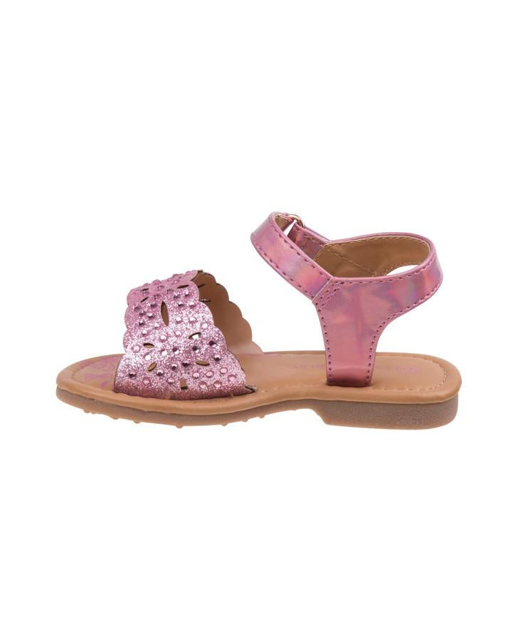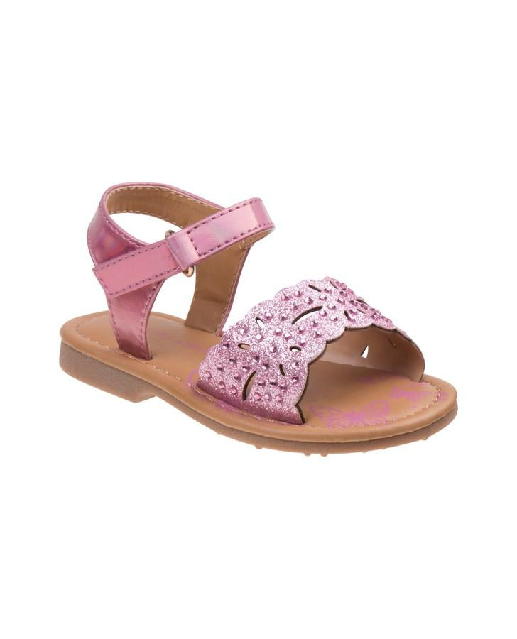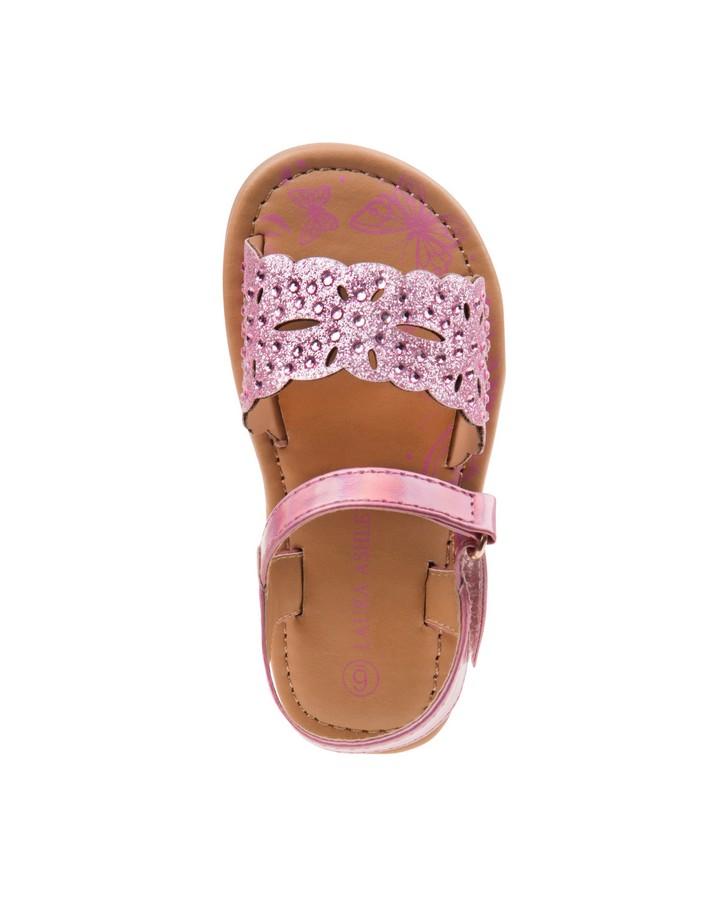 This Laura Ashley Pink Embellished sandal is equipped for all-day wear. This sandal is slip-on with cutout details. Imported, manmade. This features a faux leather upper and hook and loop closure in a cute design that goes along with a skirt, dress or short pants.