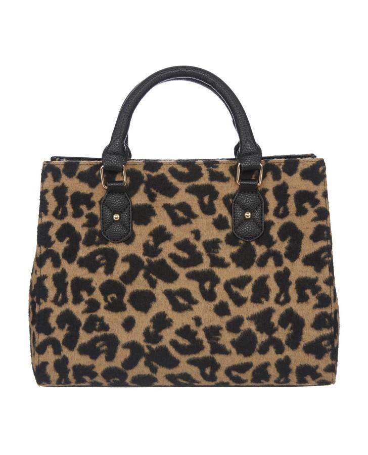 Soft-touch leopard fabric is a glamorous look against our faux leather in black. This Double Compartment Bag gives your day to day style a wild finish, and is a versatile piece for a variety of looks.